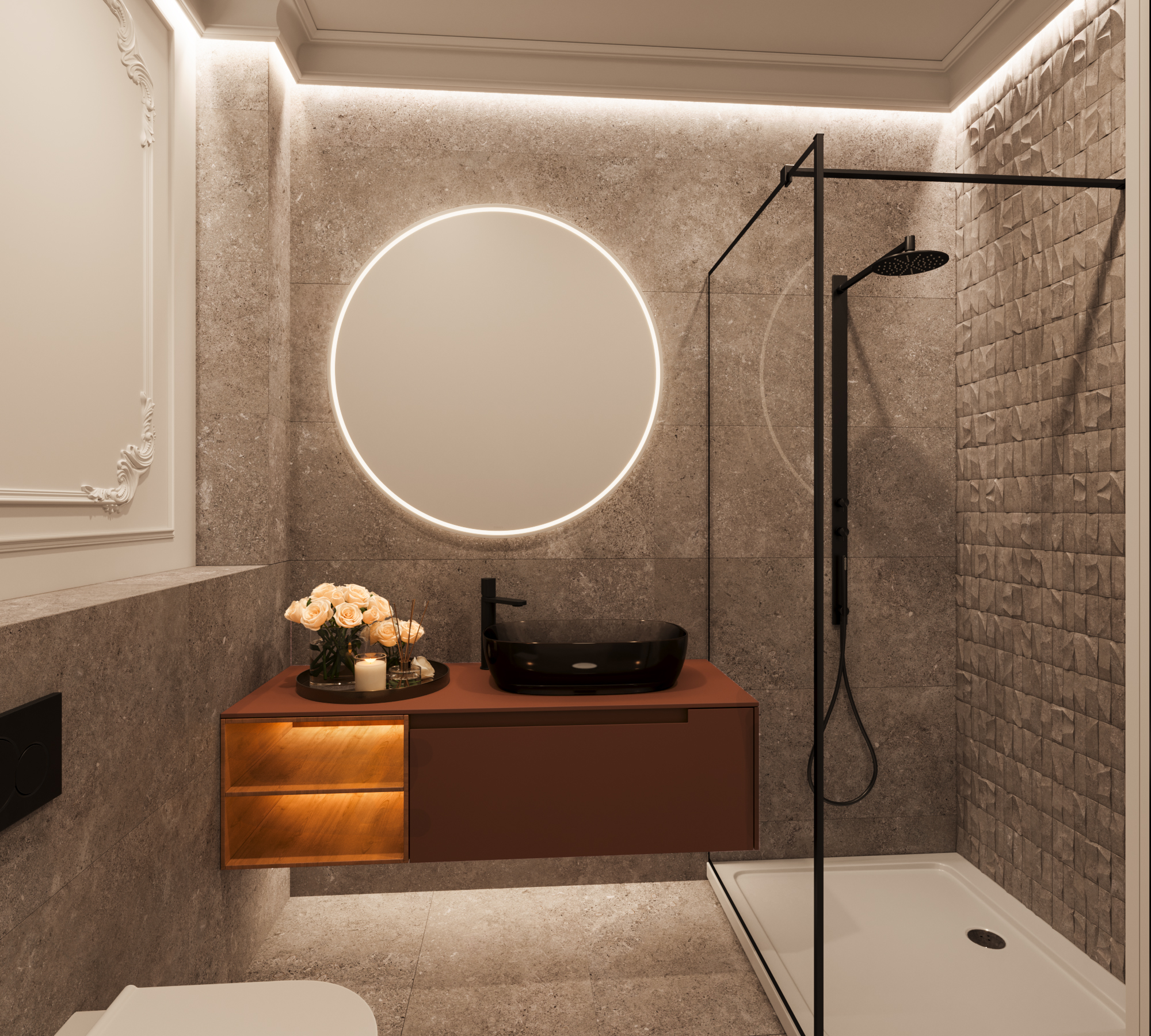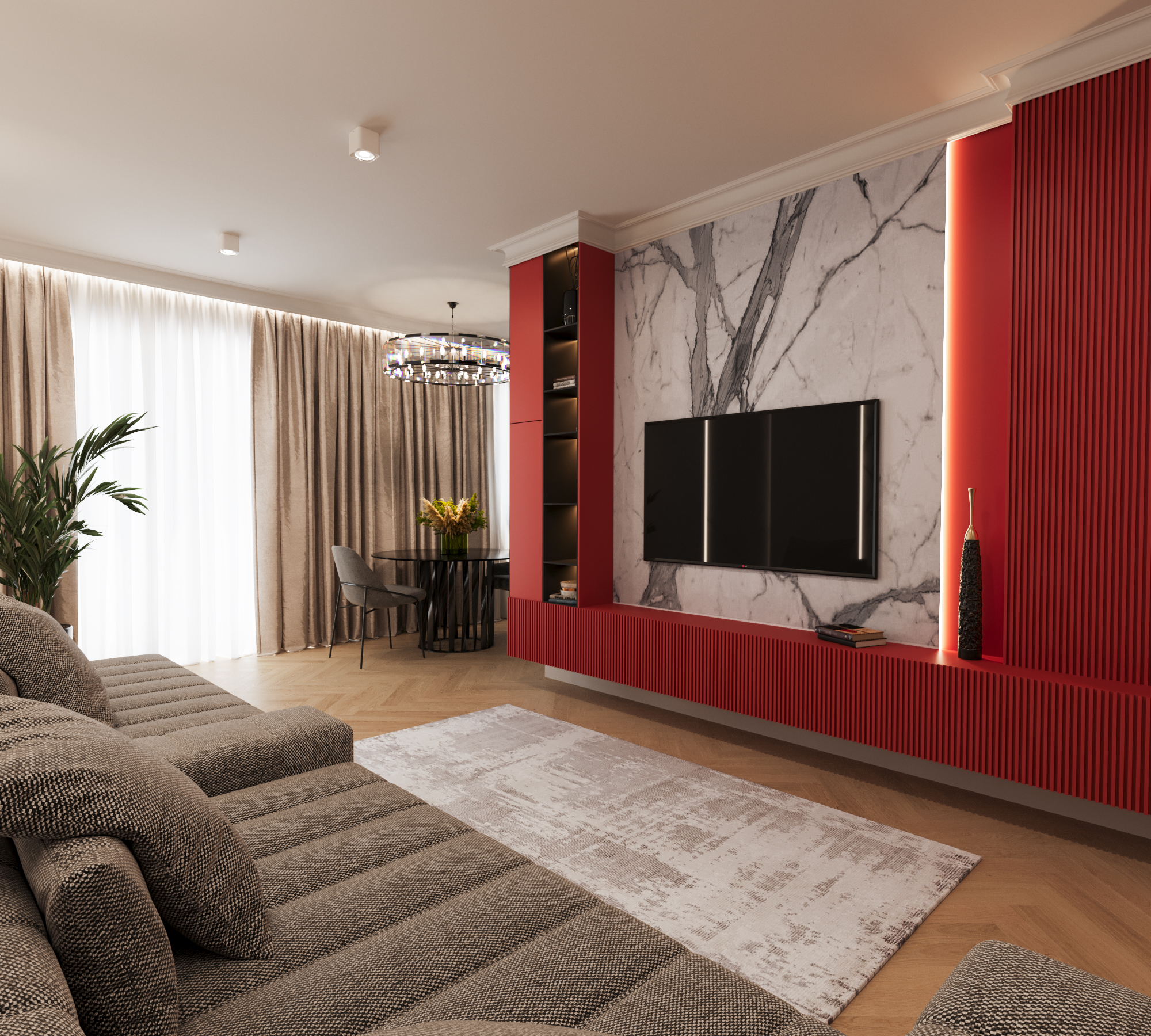 UWAGA: WIZUALIZACJE PRZEDSTAWIAJĄ PRZYKŁADOWE WYKOŃCZENIE ELEWACJI BUDYNKU ORAZ TERENU. ZAKRES WYKOŃCZENIA ELEWACJI, UŻYTE MATERIAŁY, KOLORYSTYKA, ZAGOSPODAROWANIE TERENU, MAŁA ARCHITEKTURA ZGODNIE Z DOKUMENTACJĄ BUDOWLANĄ, WYKONAWCZĄ LUB POWYKONAWCZĄ. WYPOSAŻENIE I WYKOŃCZENIE LOKALI STANOWIĄ PRZYKŁADOWĄ ARANŻACJĘ OKREŚLAJĄCĄ FUNKCJONALNOŚĆ MIESZKAŃ. WYPOSAŻENIE, ILOŚĆ, RODZAJ, MARKA, LOKALIZACJA ORAZ WIELKOŚĆ ZAPROPONOWANYCH URZĄDZEŃ MA CHARAKTER ORIENTACYJNY. LOKALIZACJA PRZYKŁADOWEGO WYPOSAŻENIA I WYKOŃCZENIA POWIĄZANA JEST Z PROJEKTOWANĄ INFRASTRUKTURĄ BUDYNKU. WIZUALIZACJE WNĘTRZ PRZESTRZENI WSPÓLNYCH OGÓLNODOSTĘPNYCH LUB WNĘTRZA LOKALI STANOWIĄ PRZYKŁADOWE I ORIENTACYJNE WYKOŃCZENIE WNĘTRZA. MATERIAŁY WYKOŃCZENIOWE WNĘTRZ MOGĄ RÓŻNIĆ SIĘ OD PRZEDSTAWIONYCH NA WIZUALIZACJI. ZAKRES WYPOSAŻENIA I WYKOŃCZENIA LOKALU OKREŚLA UMOWA NABYCIA LOKALU. ZAKRES WYPOSAŻENIA I WYKOŃCZENIA POMIESZCZEŃ OGÓLNODOSTĘPNYCH I KOMUNIKACJI OKREŚLA DOKUMENTACJA BUDOWLANA, WYKONAWCZA LUB POWYKONAWCZA BUDYNKU